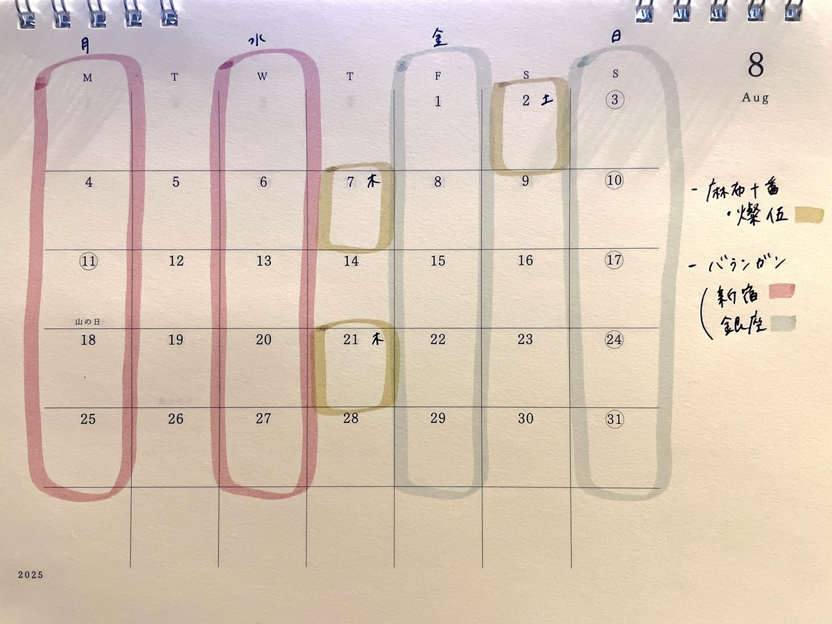 カレンダーにまとめると、こんな感じです。お気軽にお越し下さい🌞